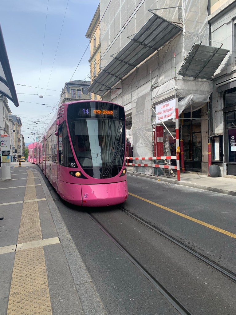 Nachdem Essen mussten wir auf ein Tram, das uns zum Seilpark transportieren sollte. Dieses Tram war von Aussen wie von Innen pink.