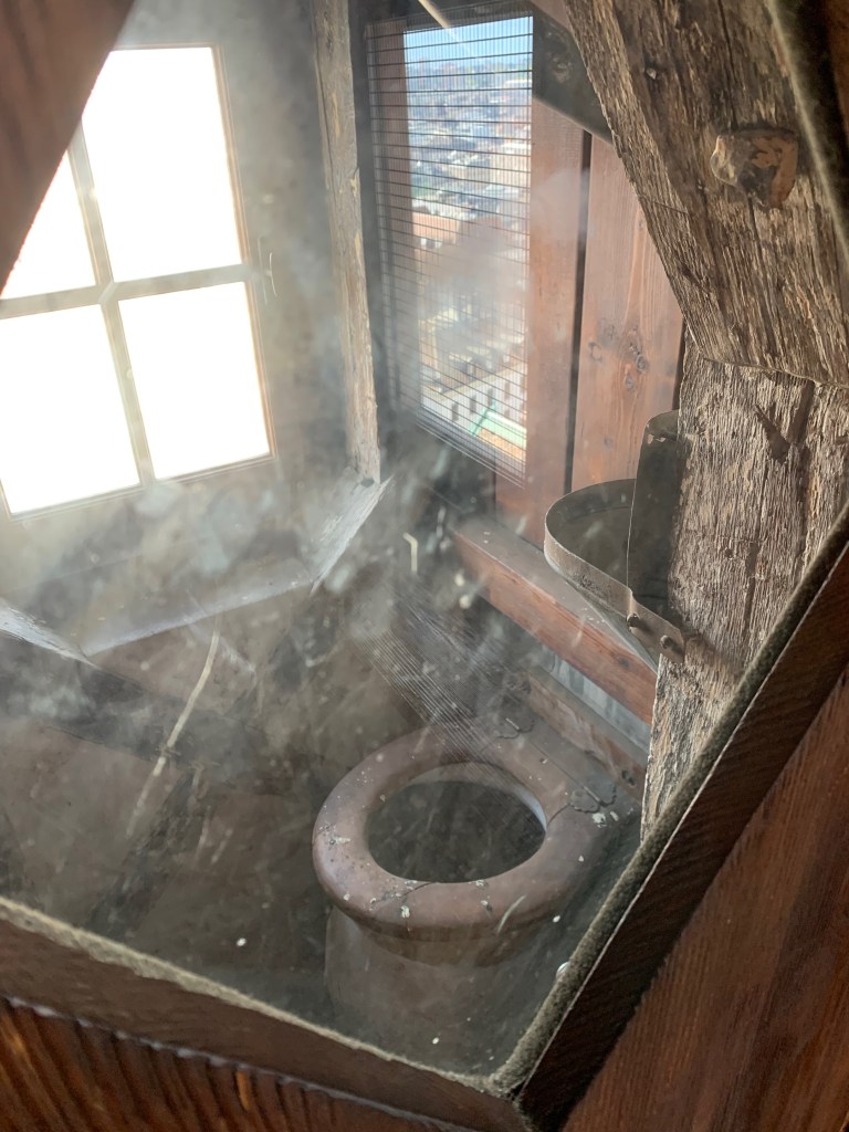 Wir fragten uns, wie sie, etwas später dann erst, es im 15. Jh. hinbrachten, eine 2 Tonnen schwere Glocke auf den Turm zu schaffen. Die Technologie im Mittelalter kann eben gar nicht so schlecht gewesen sein, wie man annehmen könnte. Ausserdem gefielen uns die bunten Fenster und ganz allgemein der gregorianische Baustil mit seinen detailgetreuen Verzierungen ausgezeichnet. Nicht zu vergessen gilt es, das Plumpsklo ganz oben im Südturm zu erwähnen, welches zu unserem Missfallen nicht zugänglich war. Aber auch durch das Fenster zum Klo waren wir verzaubert.