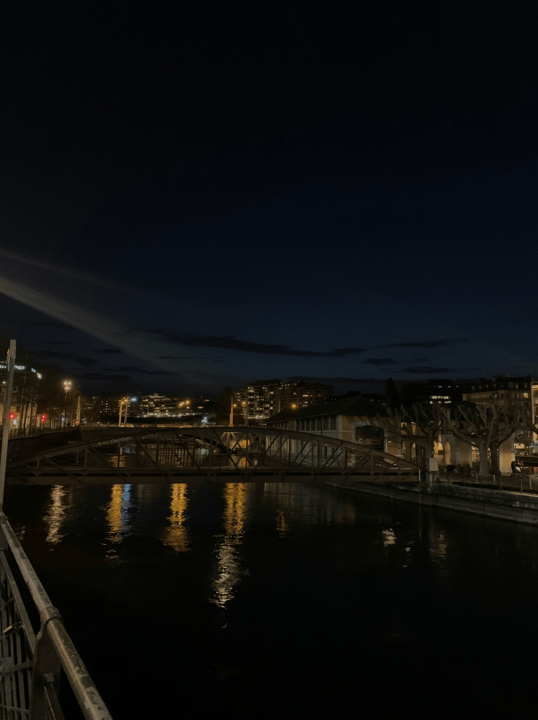 Nachdem ich gegessen und zusammen mit Aulona darauf gewartet hatte, dass auch sie ihre abendliche Mahlzeit zu sich nehmen durfte, beschlossen wir einen kleinen Abendspaziergang zu machen. Von der Station in der Nähe unseres Hotels nahmen wir den Bus in Richtung See. Als wir schliesslich einige Haltestellen nach dem Bahnhof ausstiegen, waren wir entzückt von der Aussicht auf das Gewässer und die Lichter.