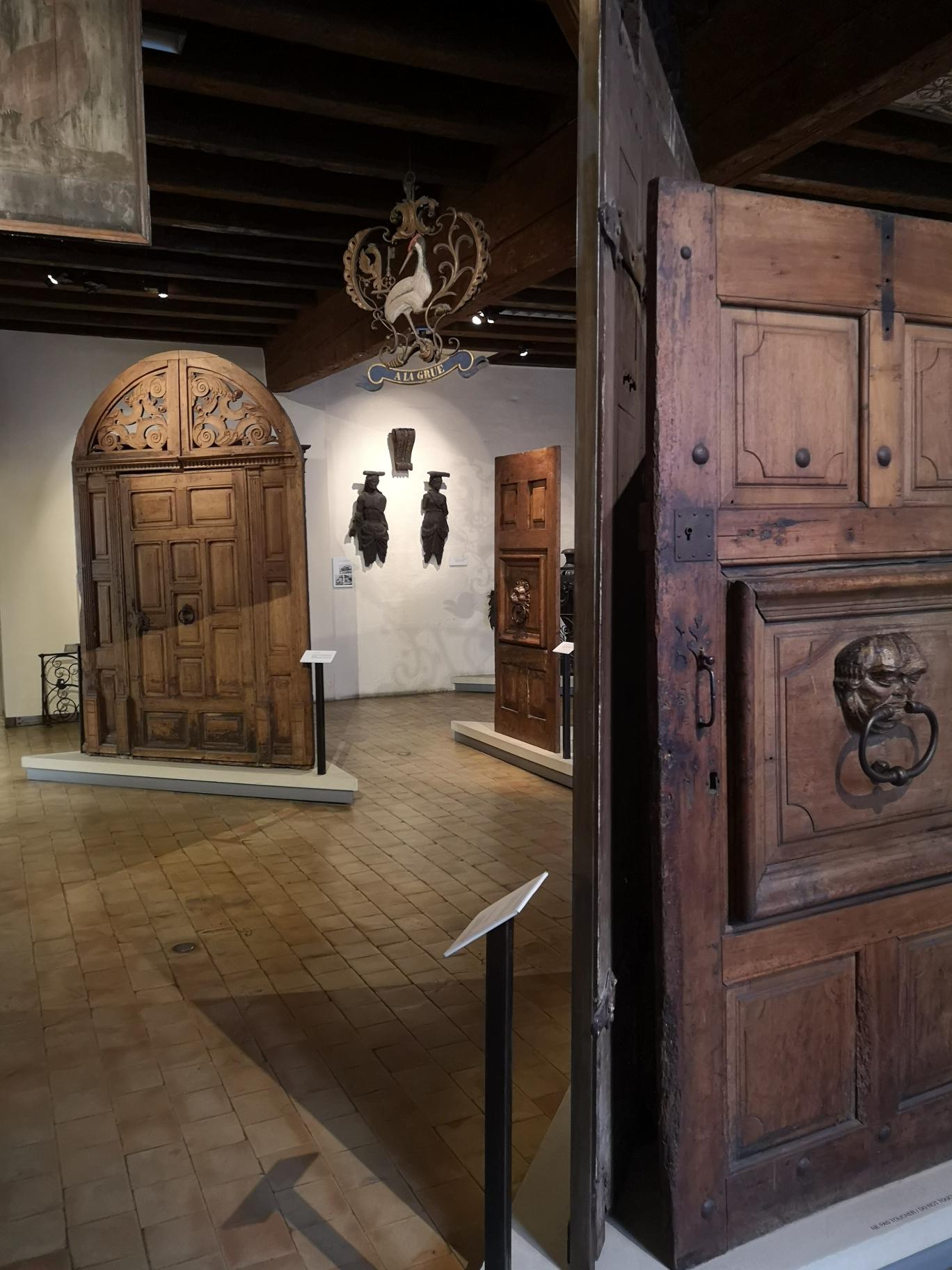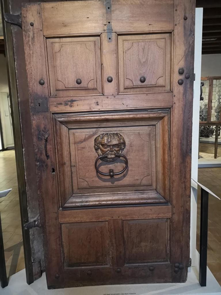 Mit Abstand am Eindrücklichsten fand ich das Stockwerk mir der Ausstellung der verschiedenen Türen. Die Vielfalt der Grössen, Formen, Strukturen und Verzierungen fand ich persönlich sehr imponierend. Sie erinnern an den eigentlichen Sinn und Zweck, die eine Tür vorallem in der Zeit des Mittelalters zu erfüllen brauchte. Die üppigen Verzierungen der Türen deuten wohl darauf hin, dass die Reichen dazumals Zeit ihr Vermögen zur Schau stellen wollten. Je mehr und aufwendiger die Verzierungen, umso mehr Vermögen. Auf den einen Türen haben wir sogar Metalldornen gesichtet, woraufhin Frau Stolpe spekulierte, dass es womöglich zur Verteidungung vor Fremdlingen diente. Ehrlichgesagt wäre ich nie auf diese Erkenntnis gekommen, muss aber gestehen, dass sie aus meiner Sicht sinnvoll erscheint.